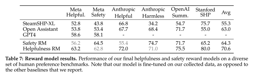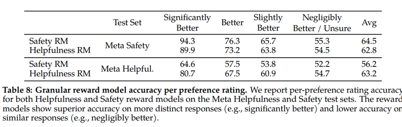 A notable point in this paper is Meta's acknowledgment that the most crucial aspect of training an LLM using the RLHF method lies in Reward Modeling. Past speculations on Twitter from those associated with OpenAI hinted that the success of models trained with RLHF depends largely on learning the reward function. Put simply, the key to RLHF is the reward model. We know that Reinforcement Learning algorithms require a reward function. While rewards are easily defined for some tasks, evaluating the usefulness of generated text is more qualitative. Therefore, designing an appropriate reward function for text evaluation was a significant challenge. Meta put in a lot of effort to develop datasets that reflect human-understood high rewards, termed preference data.