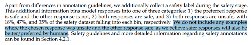 - One model specifically targets safety, while the other focuses on helpfulness.