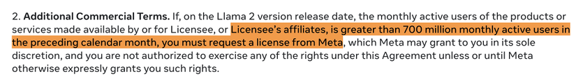 - Secondly, there are restrictions for users. For instance, it's applicable only for companies with fewer than 700 million active users per month. This suggests they target smaller businesses and startups.